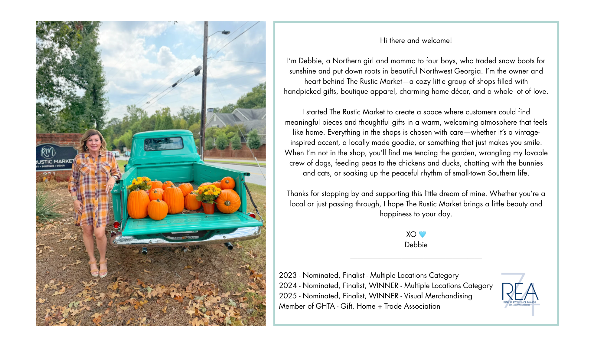 Come find everything you need for your home or a gift for someone special at The Rustic Market! Home Decor, fabulous hostess ware, beautiful florals, tabletop accessories, baby gifts, home fragrance, bath products and local handmade goodness.