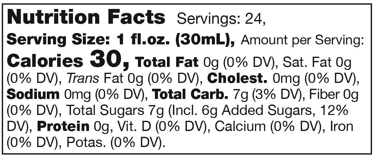 - Ingredients: Water, Cranberry Purée, Organic Wildflower Honey, Orange Juice Concentrate, Pure Cane Sugar, Apple Juice Concentrate, Ginger (ginger, citric acid), Lime Juice Concentrate, Bitters (alcohol, water, sugar, gentian, natural flavors, caramel color), Organic Cinnamon Extract, Natural Flavor