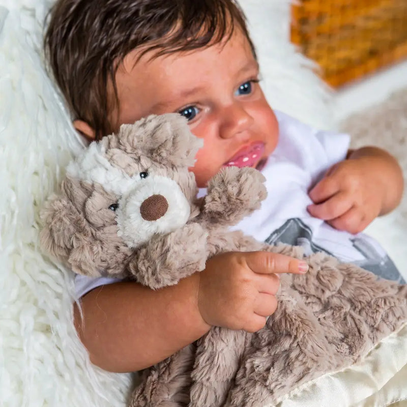 The subtle color palette, luxurious textured fabric, and lasting classic designs make Putty Nursery popular with modern moms. Blankets, Loveys, and soft toys coordinate for a perfect gift. Stitched eyes mean total softness for the baby.