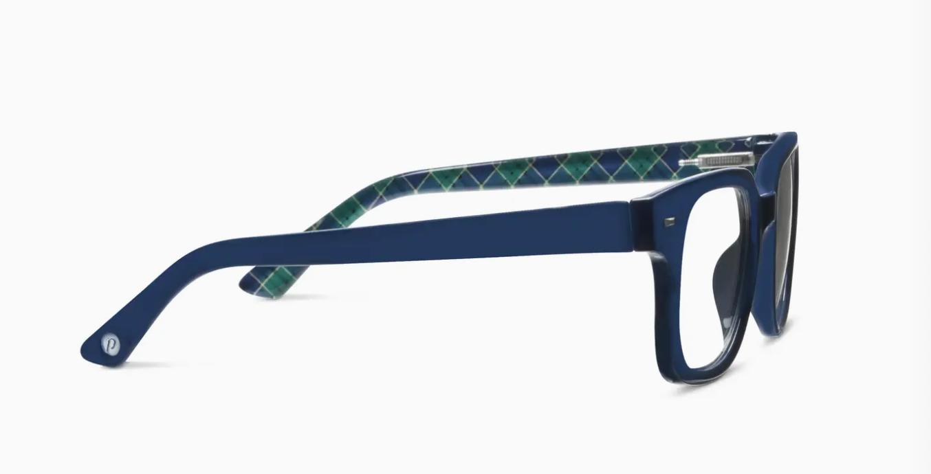 Glossary pairs a confident square shape with eye-catching details, from the metal pins on the front to the patterned print tucked along the interior temples. The result is a bold, balanced frame that brings a little bit of personality to whatever the day has in store.