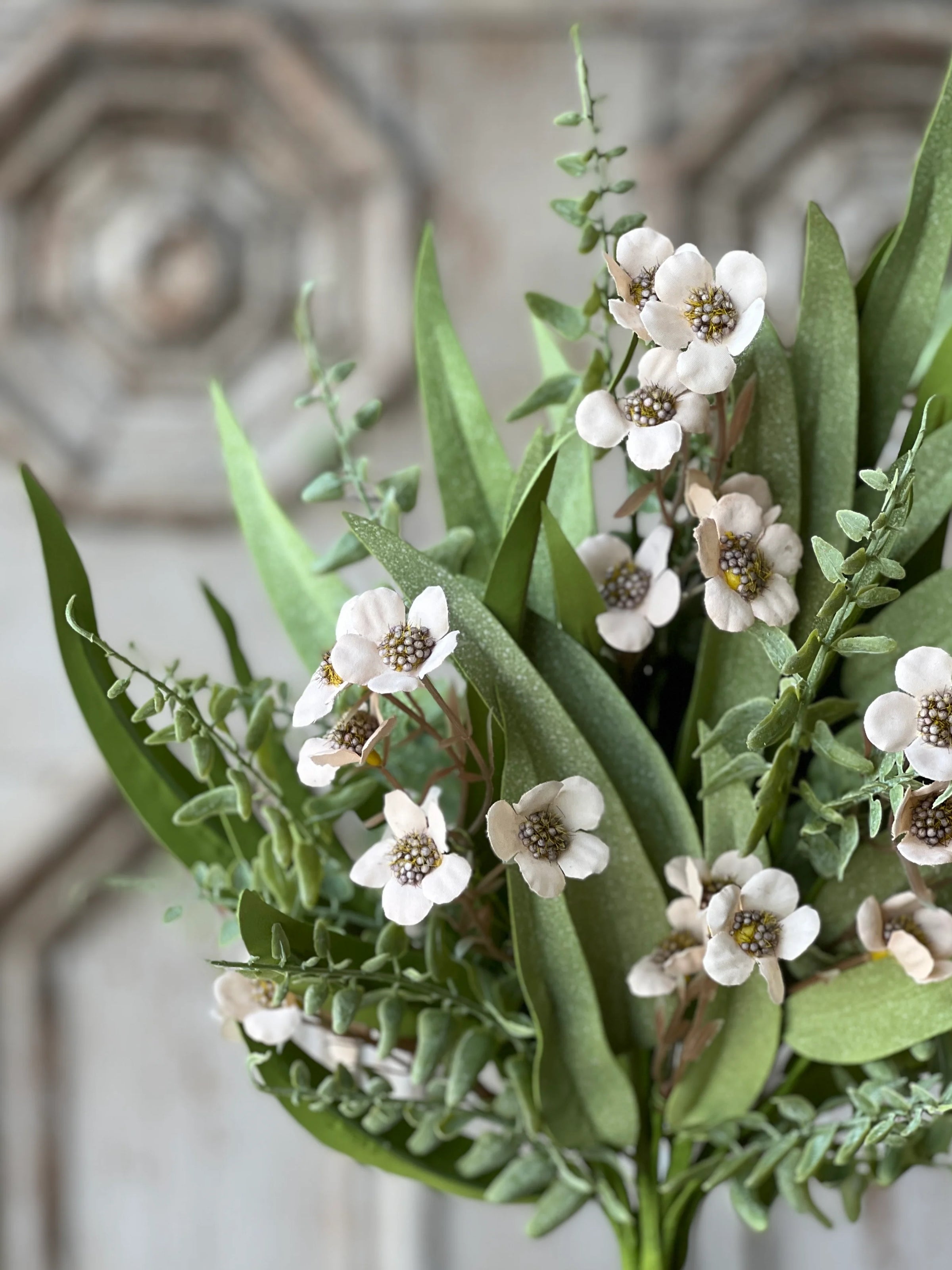 Cavalcade Greens Bush brings together textured grass, delicate ferns, and detailed florets in soft, neutral tones. Perfect for adding natural depth and visual interest to any space.