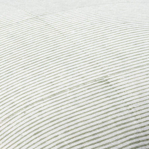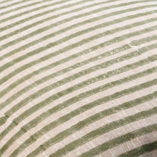 Elegant woven pillow crafted from a linen and cotton blend. Features block-printed design details and finished with a knife edge for a refined look.