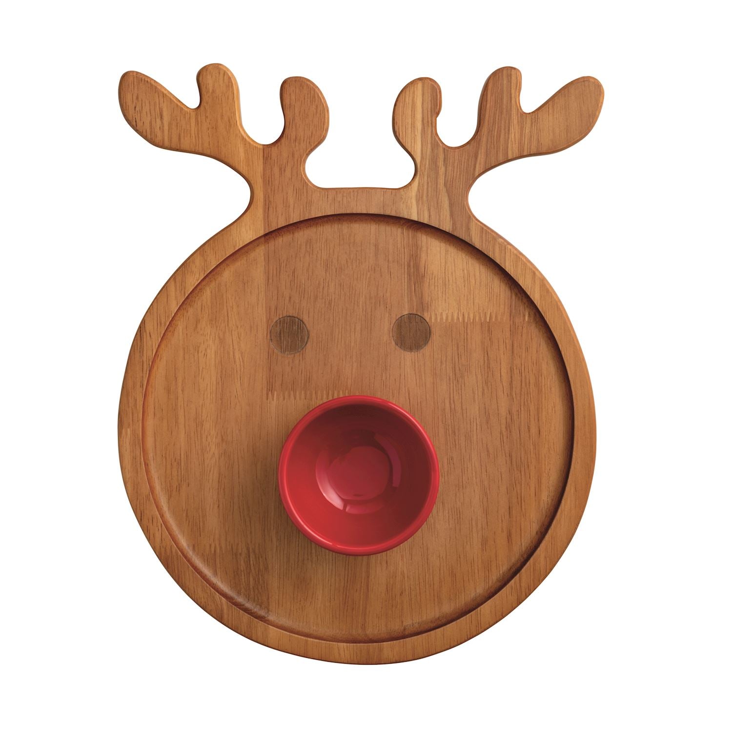 Oh deer, what a fun way to serve snacks! This charming Reindeer Board features playful wooden craftsmanship with a festive reindeer design. The included ceramic dip bowl nestles perfectly within, making this the perfect companion for your cheese, crackers, and dips. Your guests will fawn over this adorable addition to your Christmas collection!