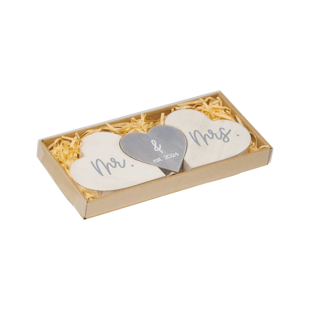 Make a special date official with the Mr and Mrs Triple Heart! Crafted with two white-washed wood heart cutouts and one grey one featuring grey and white text, it's a great way to declare your love and make sure you don't forget your anniversary. Give it as a gift to someone you love - or to yourself! (No judgment here!)