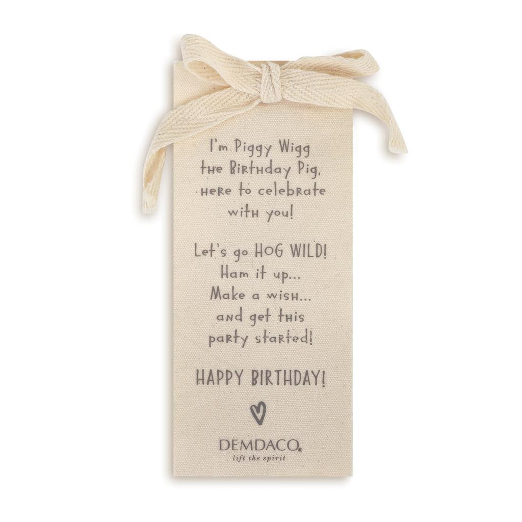 Get ready to hear squeals of delight when you give Piggy Wigg the Birthday Pig to the youngest birthday boy or girl in your life. This friendly, huggable plush is soft and strong, ready for the kind of birthday fun that only a child could dream up. Surface washable and free of removable parts, Piggy Wigg holds up to spirited play on birthdays and every other day of the year. Delight a member of your own family, or give as a thoughtful gesture to a friend or co-worker with a growing baby. Appropriate for boys and girls, Piggy Wigg’s classic, soft colors keep the focus off of gender and where it belongs: on fun!