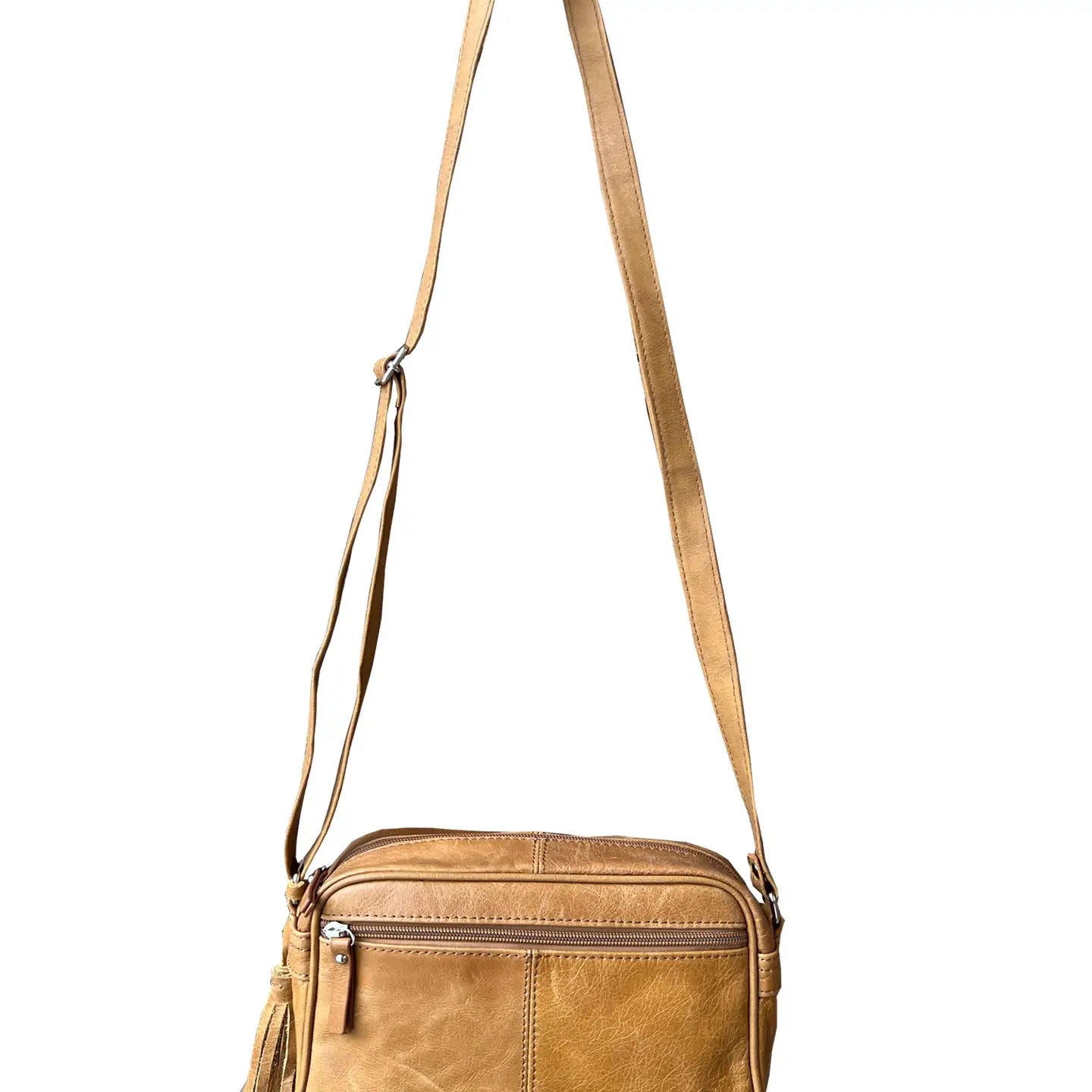 This genuine cowhide leather crossbody combines style and function perfectly for your daily essentials. Featuring three convenient pockets—top, front, and back—plus an inner zipper compartment, it keeps you organized on the go. The adjustable shoulder strap lets you wear it comfortably as a crossbody or shoulder bag, while the leather tassel adds a chic, stylish finish. Durable and versatile, this bag is designed to elevate your everyday look.
