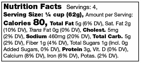 Roasted Red Peppers (peppers, water, salt, citric acid, calcium chloride), Basil, Garlic, Water, Parmesan Cheese (cultured, pasteurized, part-skim milk, salt, enzymes), Lemon Juice, Pine Nuts (tree nuts), Canola Oil, Salt, Dried Garlic, Basil Oil (sunflower oil, olive oil, basil), Red Pepper Flakes, Citric Acid, Black Pepper