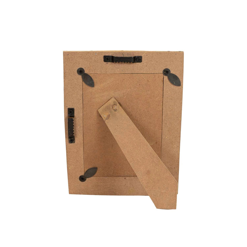 - Holds up to a 4x6 size photo. Easy tab back allows convenient access to change out photo. Easel back and 2 sawtooth hangers for tabletop or hanging options.