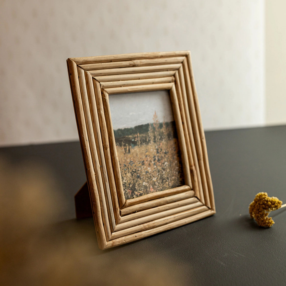Offering a soft boho infusion to modern decor, this 4x6 picture frame is handcrafted from natural cane. The beautiful texture of the pieced border creates an elevated display for your favorite photo memories. This photo frame can lend a touch of vintage or coastal style to your decor.