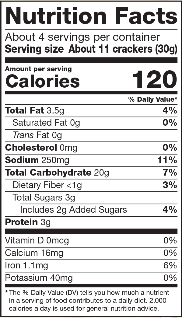 Nutritional Info for Artisan Oil & Sea Salt Crackers