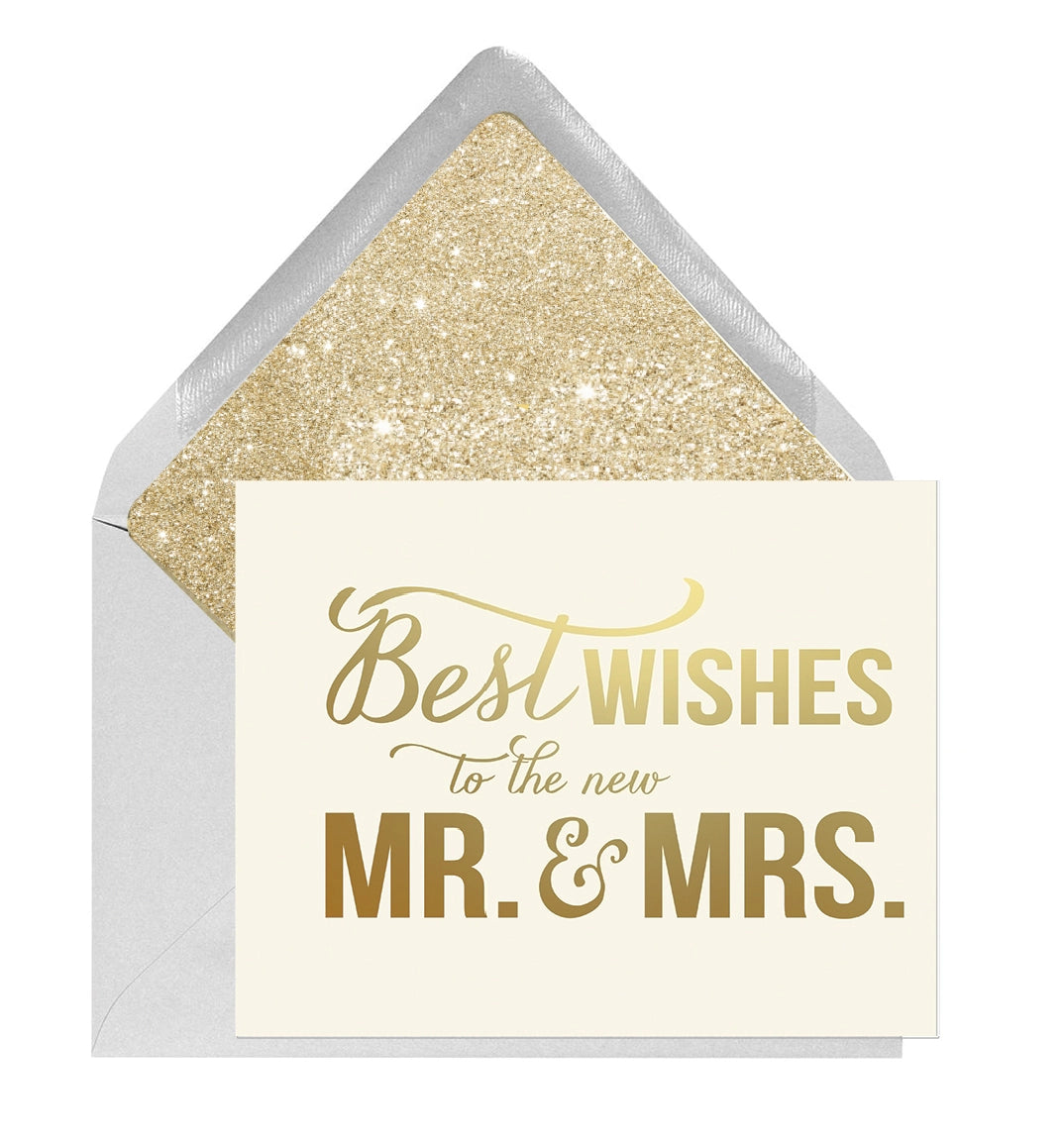 This Best Wishes Mr and Mrs Wedding Card is perfect for celebrating the big day! Its elegant design features a gold foil card and envelope liner, with a full-color 4.25" x 5.5" folded format that allows plenty of space for personalized messages. Plus, each card comes individually packaged in a protective plastic sleeve for safekeeping. Say congratulations with style and sophistication!