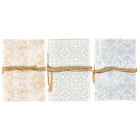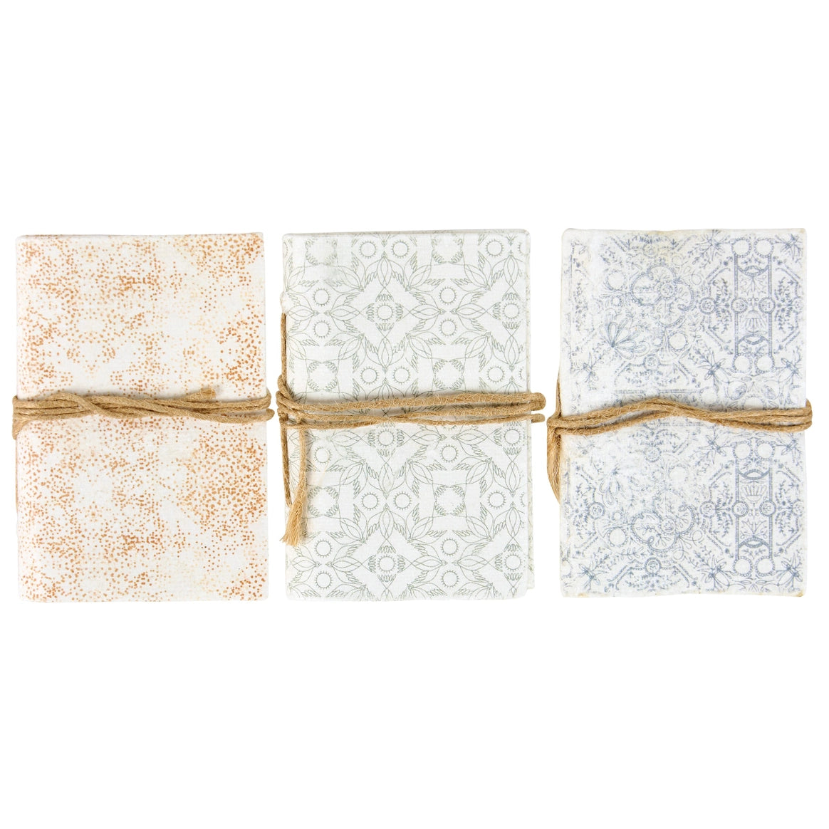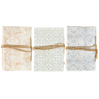 A set of 3 stylish mini notebooks displaying art nouveau inspired double-sided designs on a textured paper cover. Each nouveau notebook contains 96 unlined pages to pen anything that is desired. Our mini Nouveau Botanical notebook set includes jute tie closures to keep each secure. Notebook set comes packaged stacked and wrapped with cotton tape making it great for gifting. A stylish vintage gift perfect for any home office or desk.