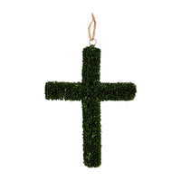 Enhance your door with our Boxwood Cross Door Hanger. Made with faux boxwood and a jute ribbon hanger, it adds a touch of elegance to any entrance. Simplistic yet eye-catching, this piece is perfect for any season or occasion. Add a touch of greenery to your doorstep today.
