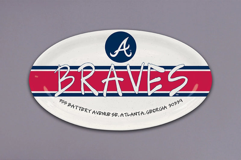 Introducing the Braves Oval Platter! Made with durable melamine, this platter is perfect for all your entertaining needs. Guaranteed to add a touch of elegance to any gathering, elevate your hosting game with the Braves Oval Platter.