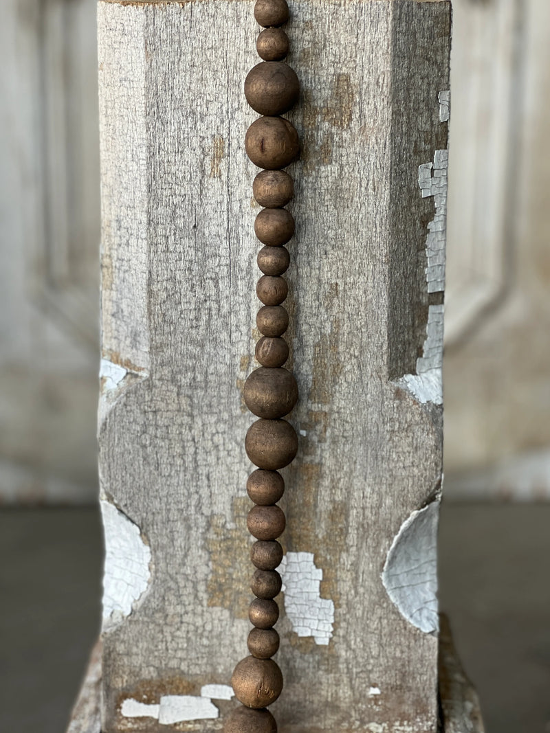 The Cadence garland has a wonderfully rhythmic feel and is composed of distressed wooden beads of two sizes with a matte finish. Beaded portion of the garland is 77" in length.