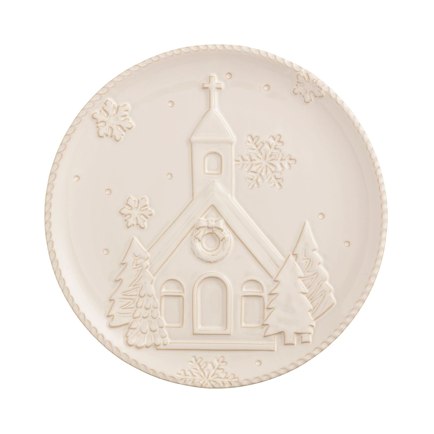Deck your table with our Christmas Church Plate, where holiday magic comes to life! This charming dish features an adorable textured relief church that practically sings carols while snowflakes dance all around. The creamy milk glaze gives it that fresh-snow look that'll make your holiday treats feel extra special. Perfect for serving up Christmas cookies or just sitting pretty as a decorative piece that tells a tiny winter wonderland story right on your table!