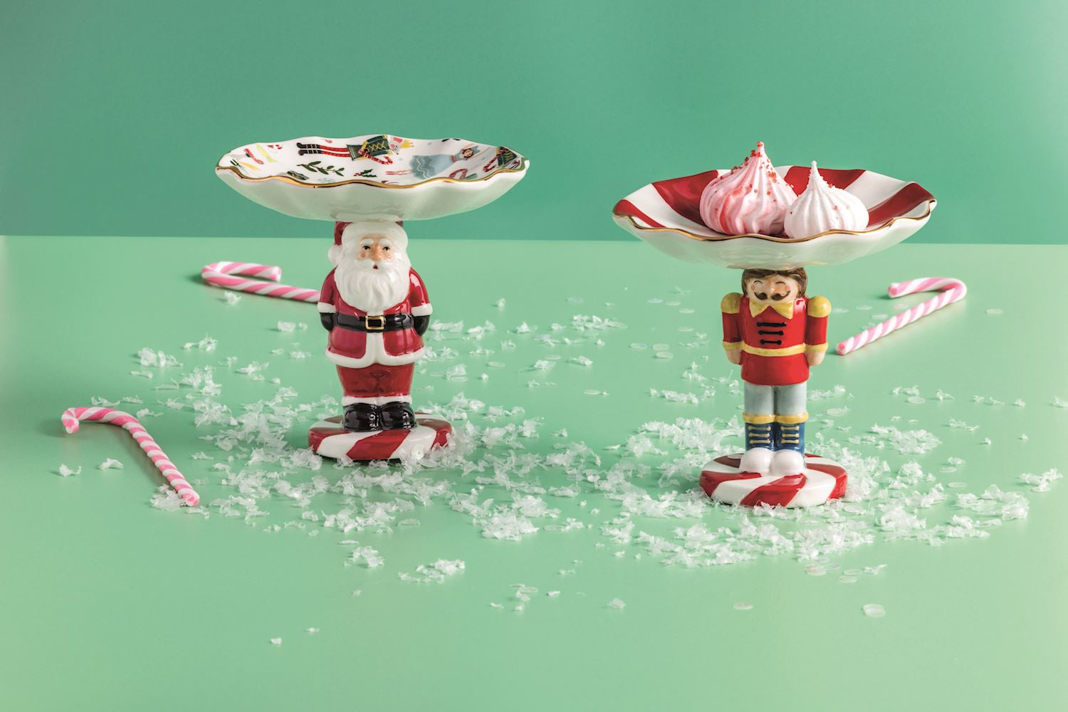 Elevate your holiday treats with our Christmas Pedestal Candy Dish! This charming ceramic dish sits atop a whimsically hand-painted base featuring your choice of a festive Nutcracker or jolly Santa figure. Perfect for displaying candies, cookies, or holiday nibbles, it adds a playful touch of Christmas cheer to any table or countertop. A delightful addition to your seasonal decor that's sure to bring smiles!