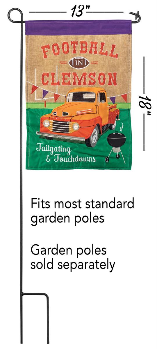 Garden size Double Applique flag is 13 x 18 inches. The design is a combination of fabric appliques and exquisitely detailed embroidery. Design is on both front and back of this 300 denier polyester double thickness flag. These flags are heavier than most others on the market and will hold up longer. Double applique flag fabrics are either satin-smooth or a burlap texture; sometimes a combination of both. Flag will retain its color and beauty for years if displayed in shade or semi-shade, and is rainproof.