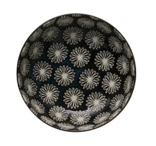 With dynamic and bold patterns, this navy blue and white bowl is perfect for individual portions and also as a small serving piece. At five inches round, it is the ideal size for a small bowl of ice cream or healthy bowl of fruit. When needing to serve salsa or other condiment, instead of using a larger bowl that is too big for the job, grab this adorable one that is just the right size. 3 styles to mix or match.