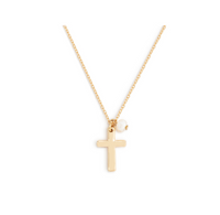 Beautifully simple, this gold cross necklace is a great fashion staple and can be easily stacked with other necklaces. A sweet reminder of faith that can be worn every day.