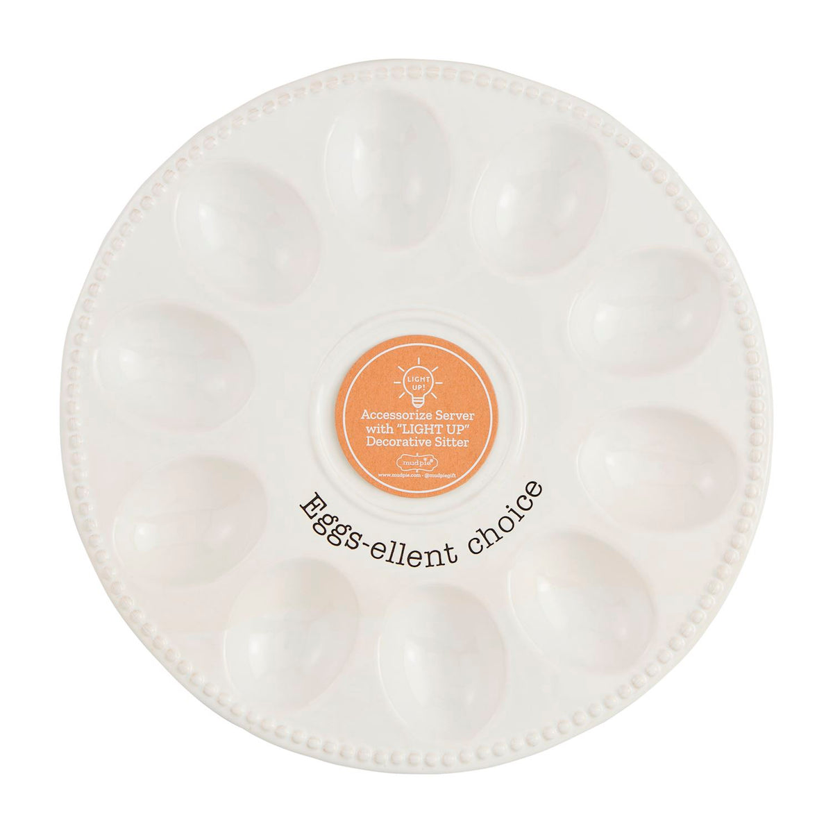 Elevate your deviled egg game with our ceramic tray! The beaded rim adds an elegant touch, while the center pedestal holds any of the LED light-up accessories for a stunning presentation. Impress your guests with this versatile and chic addition to your entertaining essentials.