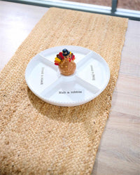 Tired of snacks taking up too much space? Let our Divided Snack Tray be the hero your buffet table needs! This four-sectioned ceramic serving tray keeps snacks in check with its perfectly portioned compartments. With its fantastic functionality, you'll be able to channel your inner host(ess) like a breeze! Add a light up decorative sitter (sold separately) for an extra bit of pizzazz.