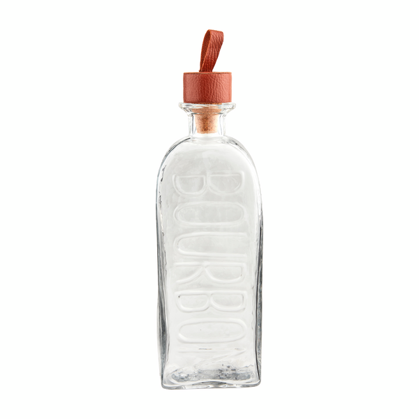 The Embossed Glass Decanter is a stunning addition to any home bar or liquor collection. Crafted from high-quality glass, this decanter showcases an elegant embossed design that adds a touch of sophistication to your space. One of the standout features of these decanters is its cork stopper, which not only ensures a tight seal to preserve the freshness and flavor but also adds a rustic charm to the overall design. The stopper is adorned with a genuine leather loop topper, adding a luxurious and unique touch to the decanter. Whether you're a vodka, gin or bourbon connoisseur, or simply enjoy having a stylish way to serve your favorite spirits, this embossed glass decanter is a must-have. Its timeless design and impeccable craftsmanship make it a perfect gift for special occasions or a delightful treat for yourself. Elevate your drinking experience with the Embossed Glass Decanter and impress your guests with its beauty and functionality.