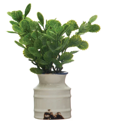 Elevate your space with our lifelike Faux Plant in Stoneware Pot. The distressed white finish adds a touch of rustic charm, while the 4 available styles allow for versatile decorating. No watering or maintenance required - enjoy the beauty of nature without the hassle!