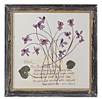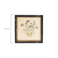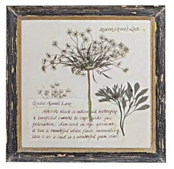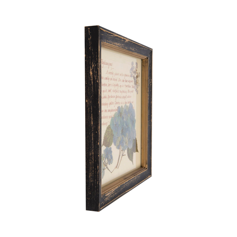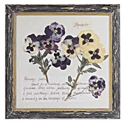 Each of these framed flower prints has an old wives tale or practical information about the featured botanical. The wood frames come in an extremely distressed black finish. Perfect hanging together in a grouping or in different locations around your home.