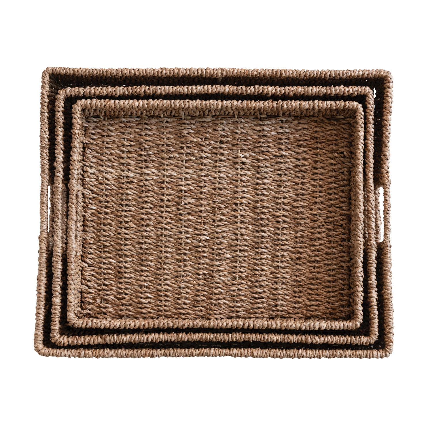 They can serve guests, organize belongings, or decorate space, bringing a touch of farmhouse, boho, French country, coastal, or lodge style to any home. The set includes three different sizes of trays that can nest inside each other when not in use. They are a perfect way to add texture and warmth to any space.
