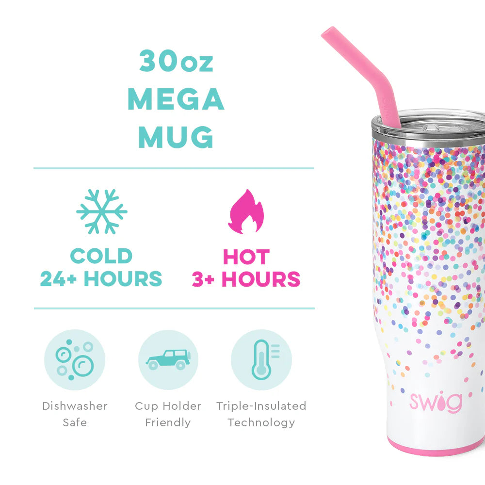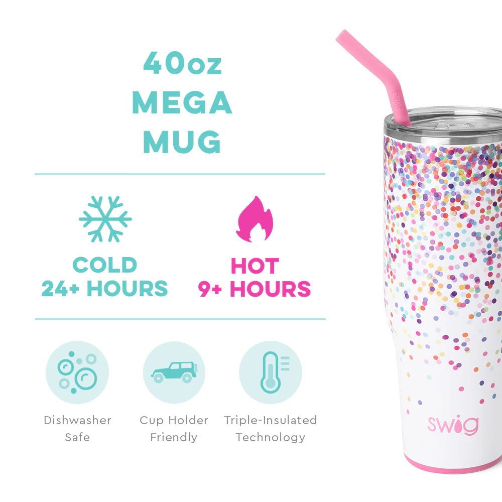 Hydrating has never been easier with our 30 or 40oz Mega Mug! The cup holder friendly frame, comfort-grip handle and flexi-tip straw come together to create your new favorite Swig!