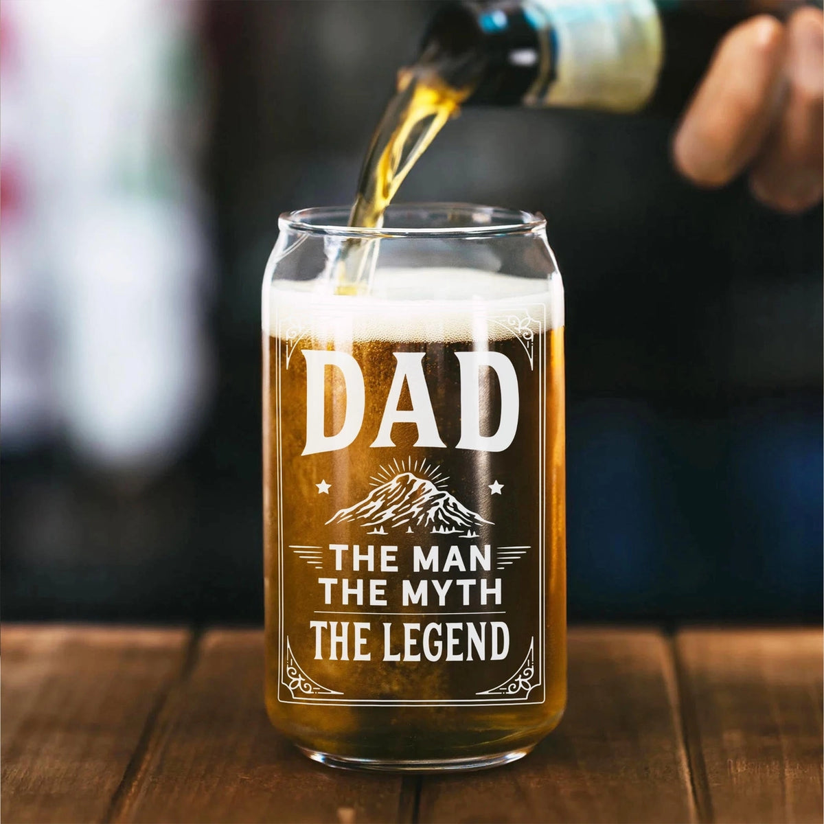 Treat your dad to the Man the Myth the Legend Beer Glass, featuring the iconic phrase "Dad: The Man, the Myth, the Legend." This unique gift is perfect for showing appreciation to the father figure in your life. It's perfectly sized to hold your favorite cold brew, craft beer, cocktail, or refresher. Cheers to dad and all he does!