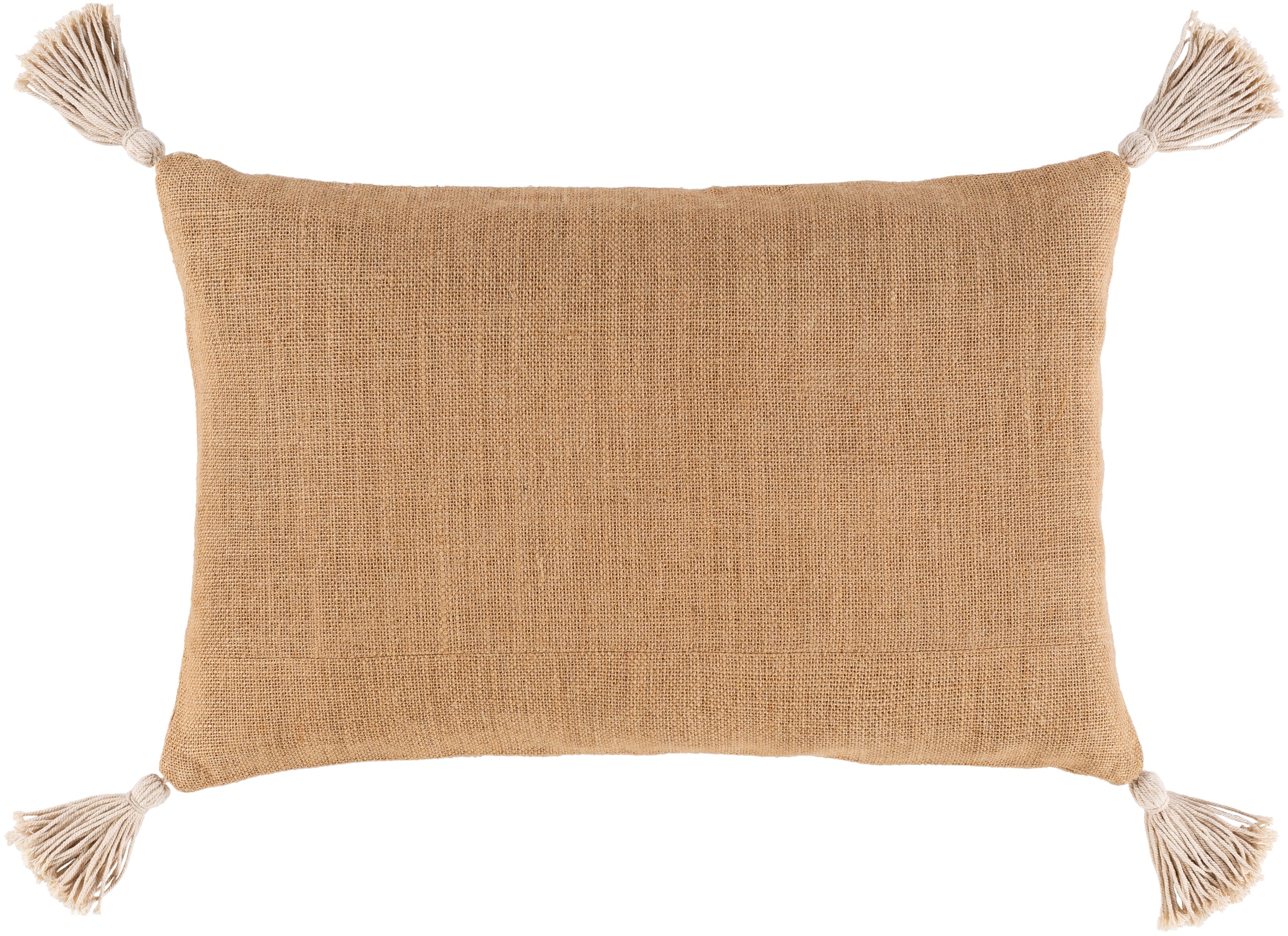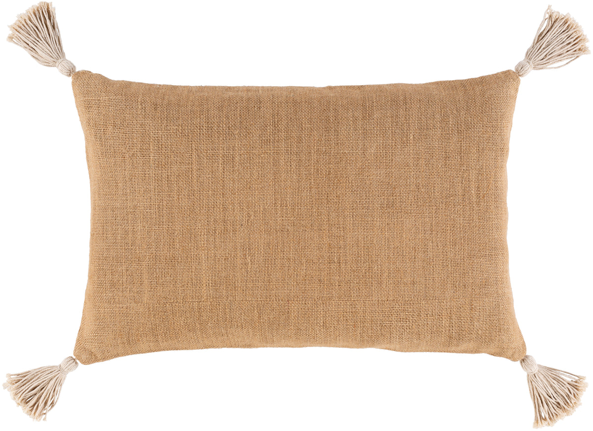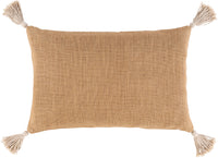 The Marion Lumbar Pillow is designed with superior quality materials. The front and back are 100% jute with a down filling for extra comfort. It features hand embroidery, tassels and is woven for a beautiful, textured look. The fabric is a combination of brown and light gray on the front and brown on the back. Perfect for any room decor.