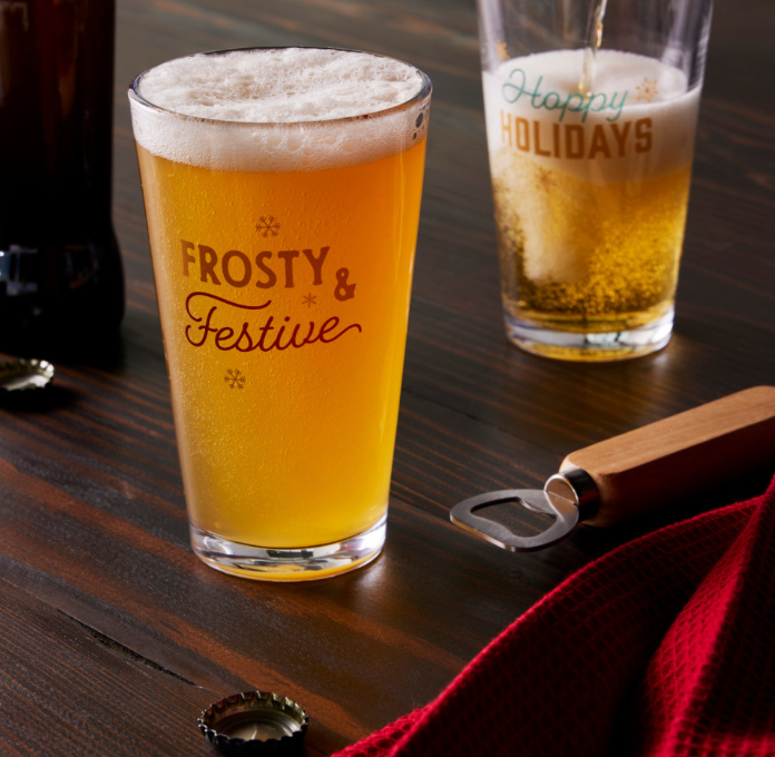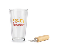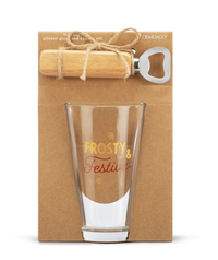Enjoy a cup of happiness and relaxation with the Frosty & Festive Pilsner Glass & Opener Set. This 16 oz. drinkware and bar accessory set is a must-have for a fun and cozy night in.