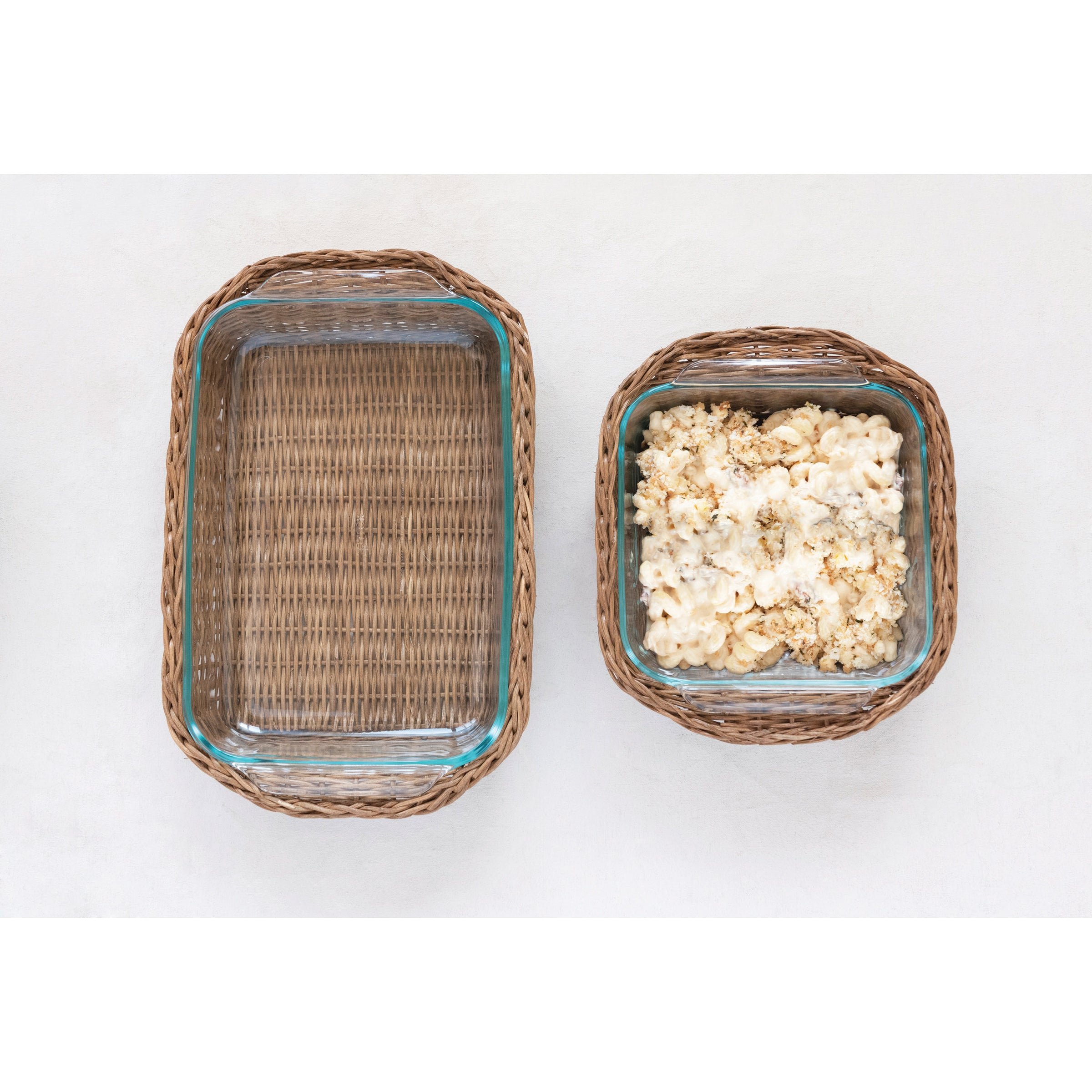 Hand-Woven Rattan Casserole Basket, Natural, baking dish not included