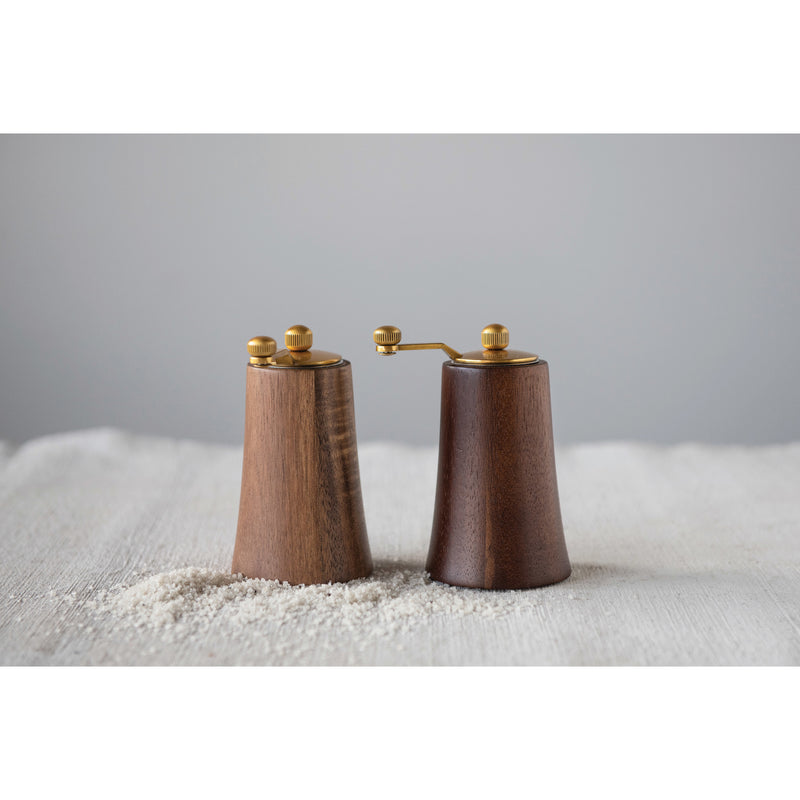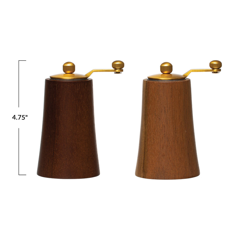 This acacia wood salt and pepper mill with metal grinder is a beautiful and practical addition to any home. It is made of acacia wood, which is a high-quality and natural material that has a rich and warm color and grain. It is smooth and sturdy, and can last for a long time. It has a metal grinder, which is a sharp and reliable material that can grind salt, pepper, or other spices with ease and precision. It has a round shape and a simple design that makes it easy to hold and use. It has a tall size of 2 inches in diameter and 11.75 inches in height, making it a prominent and spacious serveware. It can be used for grinding and dispensing salt, pepper, or other spices, or for adding some flavor and texture to the dishes. It can match any farmhouse, French country, coastal, lodge, or boho style kitchen or dining room. It is a sleek and stylish acacia wood salt and pepper mill that can enhance the table or countertop. This will impress the guests and enhance the food presentation.