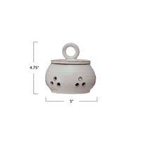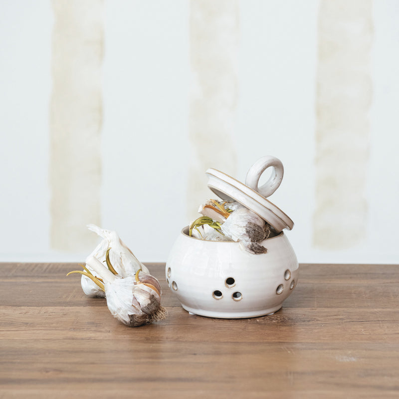 Store your garlic or onions in style with our Stoneware Garlic Keeper! The antique white, reactive glaze adds a touch of elegance to your kitchen decor. Each keeper is unique, making it a special addition to your home. Keep your produce fresh and organized with this versatile and beautiful stoneware keeper.