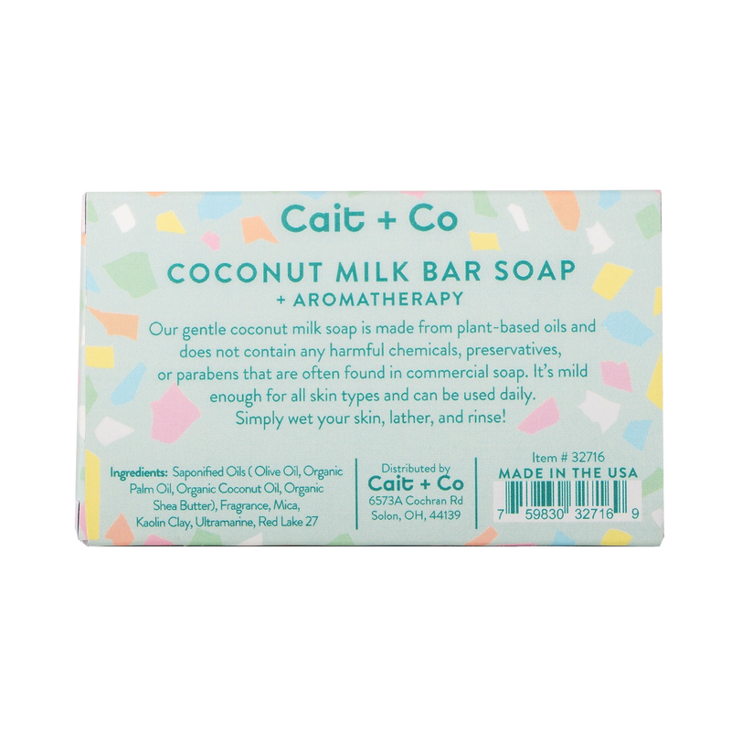 Our gentle coconut milk soap is triple milled and made from plant-based oils. It does not contain any harmful chemicals, preservatives, parabens, or synthetics that are often found in commercial soap. It’s mild enough for all skin types and can be used daily. Simply wet your skin, lather, and rinse!