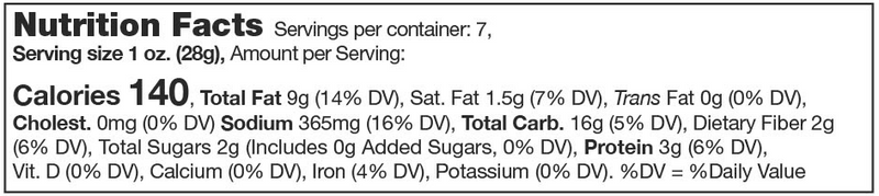 Honey Roasted Peanuts [Virginia peanuts, raw cane sugar, sugar, honey, peanut oil, potato starch, salt, xanthan gum]. Salted Corn Chips [yellow corn masa, soybean oil, flax seeds, salt]. Honey Mustard Pretzel Pieces [pretzels (enriched wheat flour (wheat flour, niacin, reduced iron, thiamin mononitrate, riboflavin, folic acid), leavening (yeast, sodium bicarbonate, ammonium bicarbonate)) palm oil, seasoning (sugar, onion powder, prepared mustard (vinegar, water, mustard seed, salt, turmeric) honey powder (refinery syrup, honey), salt, dextrose, fructose, wheat flour, sodium diacetate, malted barley flour, citric acid, paprika, turmeric, spices, silicon dioxide)]. Sesame Sticks, Honey Roasted [enriched wheat flour (unbleached wheat flour, malted barley flour, niacin, iron (reduced iron), thiamine mononitrate, riboflavin, folic acid), soybean oil, sesame seeds, honey coating (sucrose, wheat starch, honey), bulgur wheat, tack blend (maltodextrin, xanthan gum), salt, beet powder (color), turmeric (color)]. Cheddar Whales [enriched flour (wheat flour, malted barley flour, niacin, reduced iron, thiamine mononitrate (vitamin B1), riboflavin (vitamin B2), folic acid), vegetable oils (sunflower, canola and/or soybean), cheddar cheese blend (cheddar cheese (pasteurized milk, cheese cultures, salt, enzymes, calcium chloride), maltodextrin, salt, whey, corn syrup solids, disodium phosphate, sour cream powder (cream, cultures, lactic acid, cultured nonfat dry milk, citric acid), natural flavors, yeast extract, natural color (annatto and oleoresin paprika), sugar, salt, citric acid, baking soda (leavening), paprika, turmeric, garlic powder, onion powder, spice, tricalcium phosphate]. Chili Lemon Corn Sticks [yellow corn masa, soybean oil, chili lemon seasoning (maltodextrin (corn), salt, natural flavoring, citric acid, spices and herbs (garlic powder, onion powder, tomato powder), spice and coloring (contains paprika))]. Spices [salt, chili pepper, sugar, garlic, onion, silicon dioxide, soybean oil]
