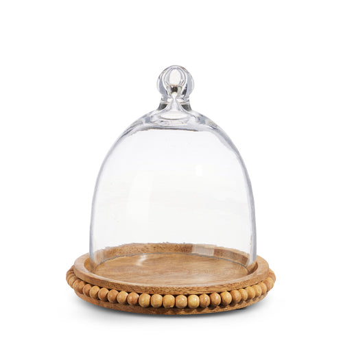Elevate your home decor with our stunning wood tray with cloche. The elegant wood beaded tray pairs perfectly with the cloche, creating a stylish and versatile centerpiece. Available in 3 sizes to fit your needs. Add a touch of sophistication to any room and impress your guests!